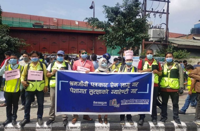 काठमाडौँ । कोरोना भाइरस संक्रमणको बाहानामा आर्थिक संकट देखाउँदै श्रमजिवी पत्रकारहरुलाई निकालिएको बिरोधमा माइतीघर मण्डलाई विरोधको कार्यक्रम आयोजना गरिएको छ ।