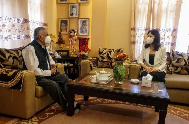 काठमाडौँ । नेपाली कांग्रेसका वरिष्ठ नेता रामचन्द्र पौडेलसँग नेपालका लागि चीनका राजदूत हाउ यान्छीले शिष्टाचार भेटवार्ता गरेकी छन् । वरिष्ठ नेता पौडेल निवास बोहोराटारमा आज उनीहरुबीच नेपाल र चीनबीचको औपचारिक सम्बन्ध स्थापना भएको ६५औँं वर्ष गाँठको अवसरमा भेट भएको नेता पौडेलको निजी सचिवालयले जनाएको छ ।