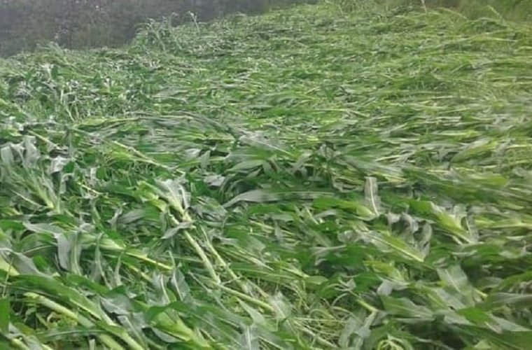 यही साउन १८ देखि २१ गतेसम्म निरन्तर हावाहुरी चलेको थियो । वर्षापछि हावाहुरी चल्दा यी स्थानमा लगाइएको मकैका बोट भाँचिएका हुन् ।