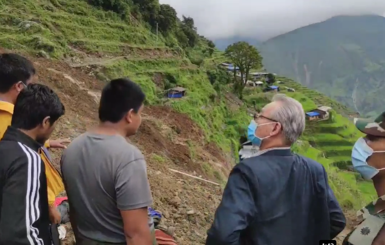 नेपाली सेनाको हेलिकप्टरमा उनीसहित गृहसचिव महेश्वर न्यौपाने तथा राष्ट्रिय विपद् जोखिम न्यूनीकरण तथा व्यवस्थापन प्राधिकरणका प्रमुख अनिल पोखरेलको टोली पहिरो प्रभावित क्षेत्रमा गएको हो ।