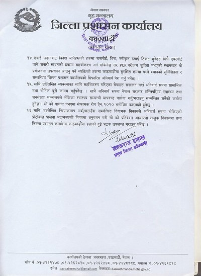 काठमाडौं जिल्लाको निषेधाज्ञाको आदेश