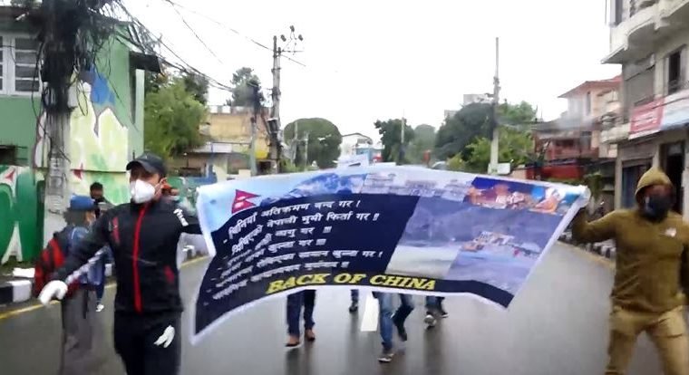काठमाडौं । हुम्लामा नेपाली भूमि अतिक्रमण गरेको भन्दै युवाहरुले काठमाडौँमा चीनविरुद्ध प्रदर्शन गरेका छन् । बालुवाटारस्थित चिनियाँ दूतावास अगाडि युवाहरुले चीनविरुद्ध प्रदर्शन गरेका हुन् । उनीहरुले सीमा अतिक्रमण बन्द गर, मिचिएको नेपाली भूमि फिर्ता गर, चिनियाँ साम्राज्यवाद मुर्दावाद, सीमा नाका खुला गर’ लगायतका प्लेकार्ड बोकेका थिए ।