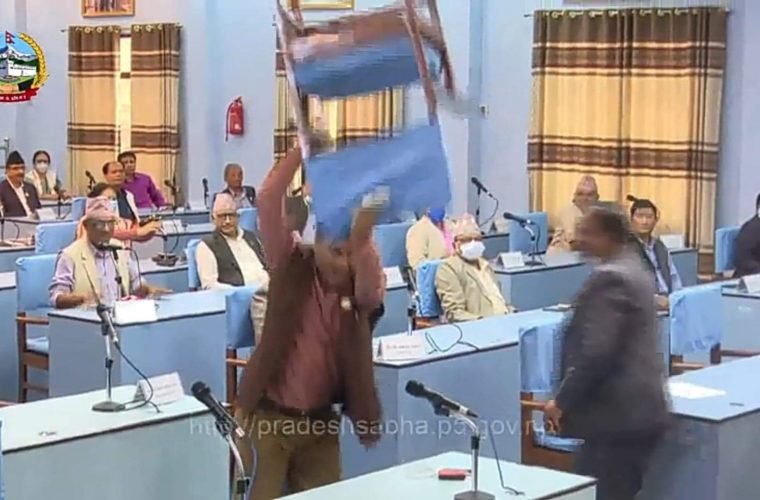प्रदेश राजधानी सार्न लागेको विरोधका प्रदेश पाँचका कांग्रेस सांसदद्वारा कुर्सी तोडफोड