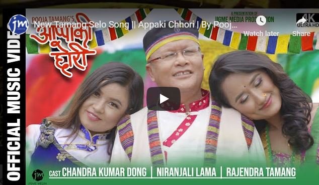 गायिका पुजा तामाङको “आप्पाकी छोरी” बोलको गीत सार्वजनिक भएको छ । आपा र छोरीको माया, ममता र स्नेह प्रकट गरेको यस गीत वरिष्ठ गायक तथा संगीतकार चन्द्रकुमार दोङको शब्द एवम् संगीत र एरेन्ज रहेको गीतमा गायिका पुजा तामाङको सुमधुर आवाज रहेको छ ।