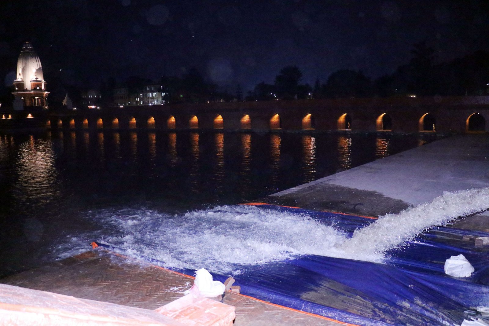 काठमाडौँको रत्नपार्कमा रहेको ऐतिहासिक रानीपोखरी । विसं २०७२ को भूकम्पबाट क्षति भइ हालै पुनःनिर्माण सम्पन्न गरी पानी भरिएको रानीपोखरी । पोखरीको विधिवतरुपमा बुधबार उद्घाटन हुँदैछ । तस्वीरः रत्न श्रेष्ठ, रासस