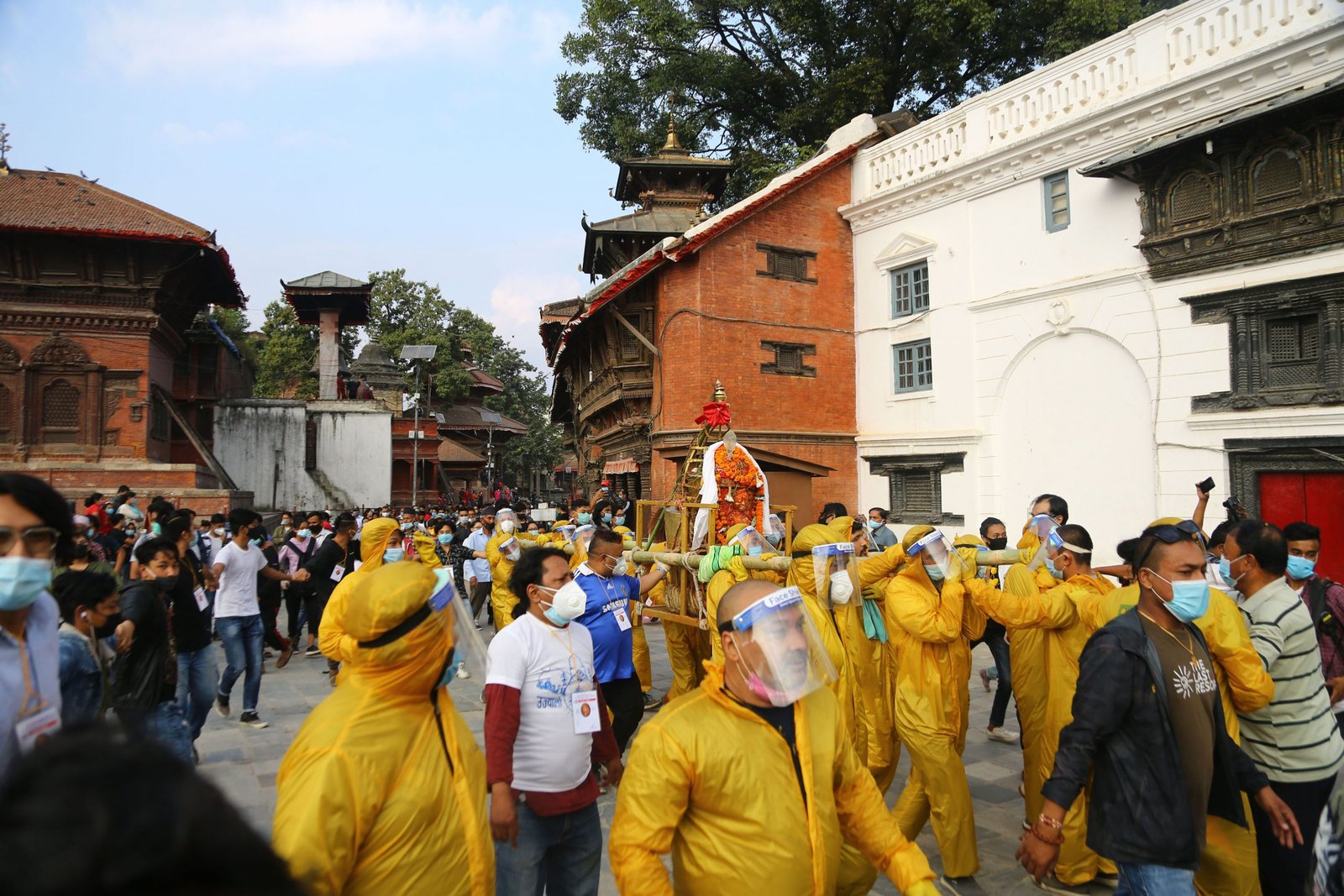 काठमाडौं । कोरोना महामारीकाबीच लिच्छवीकालीन पचली भैरव जात्रा बुधबार मनाइएको छ । असोज शुक्ल पंचमीको दिन दक्षिण कोलीय ग्राममा मध्य रातमा हुने जात्रा यस वर्ष भने बुधबार पहिलो पटक दिउँसो मनाइएको हो ।