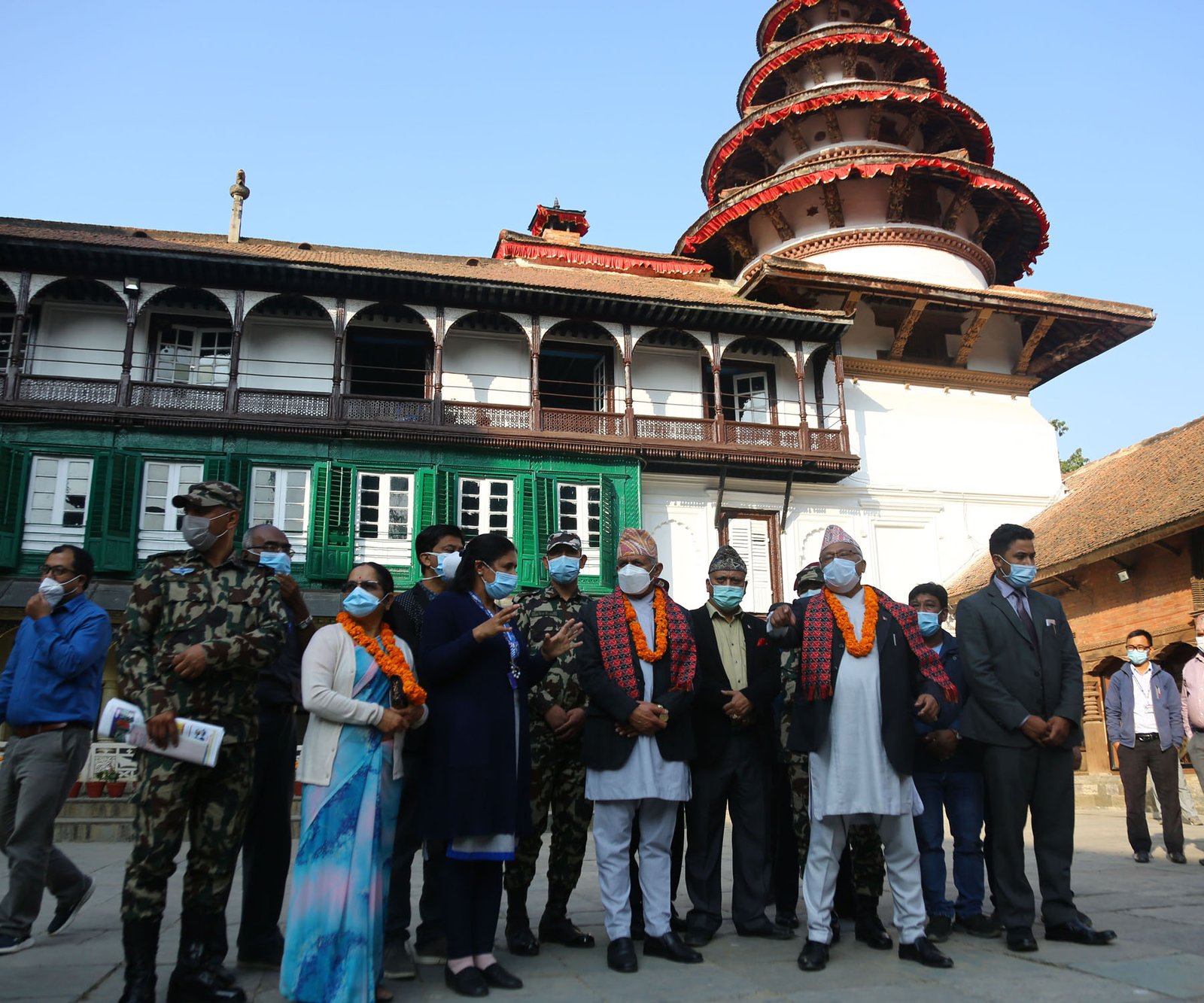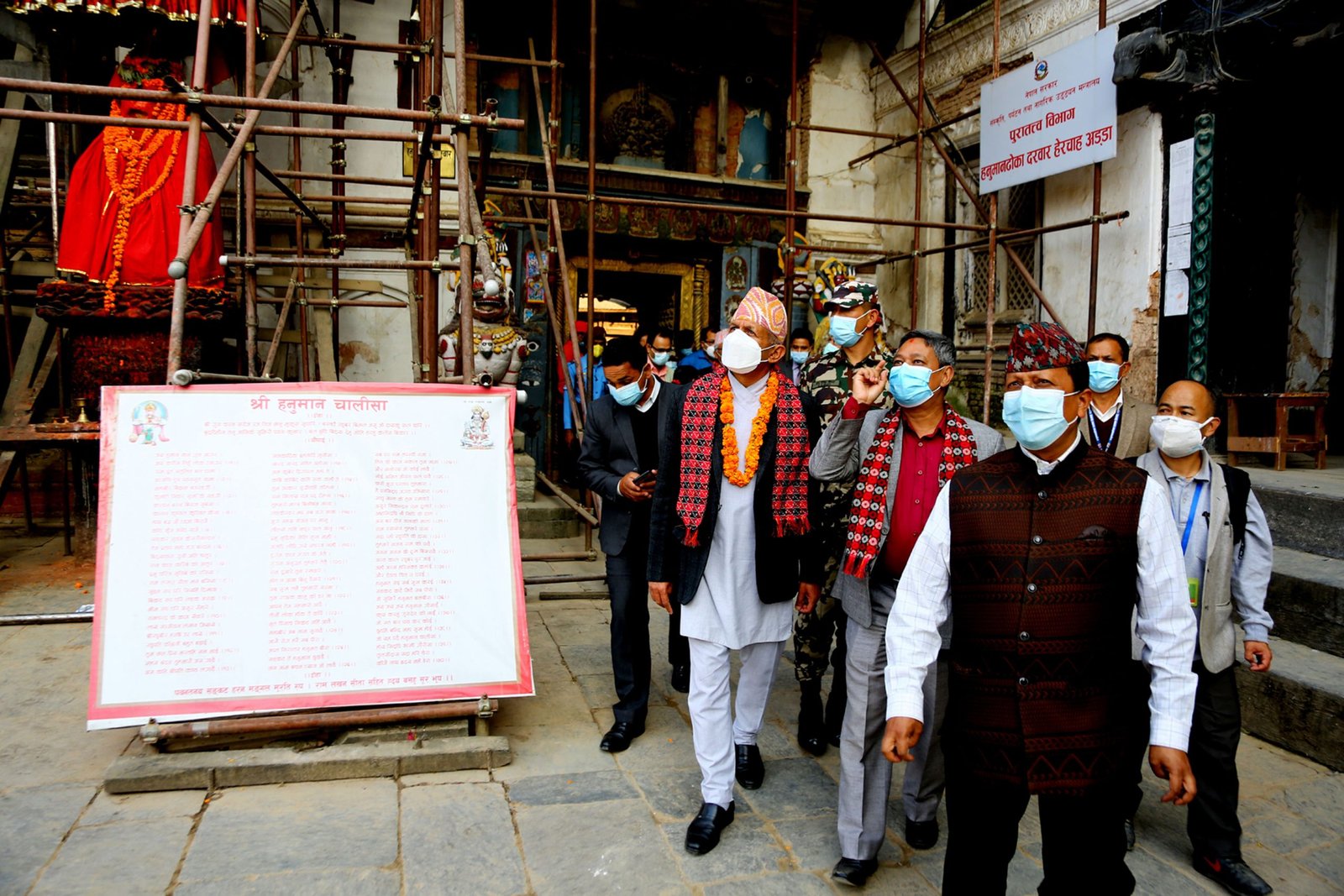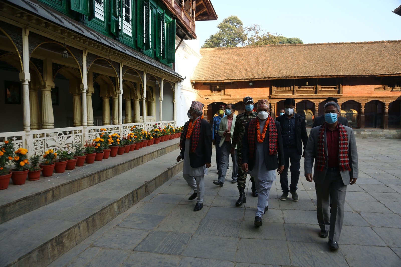 मन्त्री ज्ञवाली र श्रेष्ठले आजै वसन्तपुरस्थित हनुमानढोका दरबार हेरचाह अड्डाभित्र रहेका आगमछेँ, मोहनकाली चोक, कालिदमन चोक, सुन्दरी चोक, नासल चोक र मूल चोकका बारेमा जानकारी लिएका थिए । अड्डाका प्रमुख सन्दीप खनालले गोर्खा भूकम्पकै कारण क्षति भएका अन्य निर्माणाधीन सम्पदाका बारेमा अवगत गराएका थिए ।