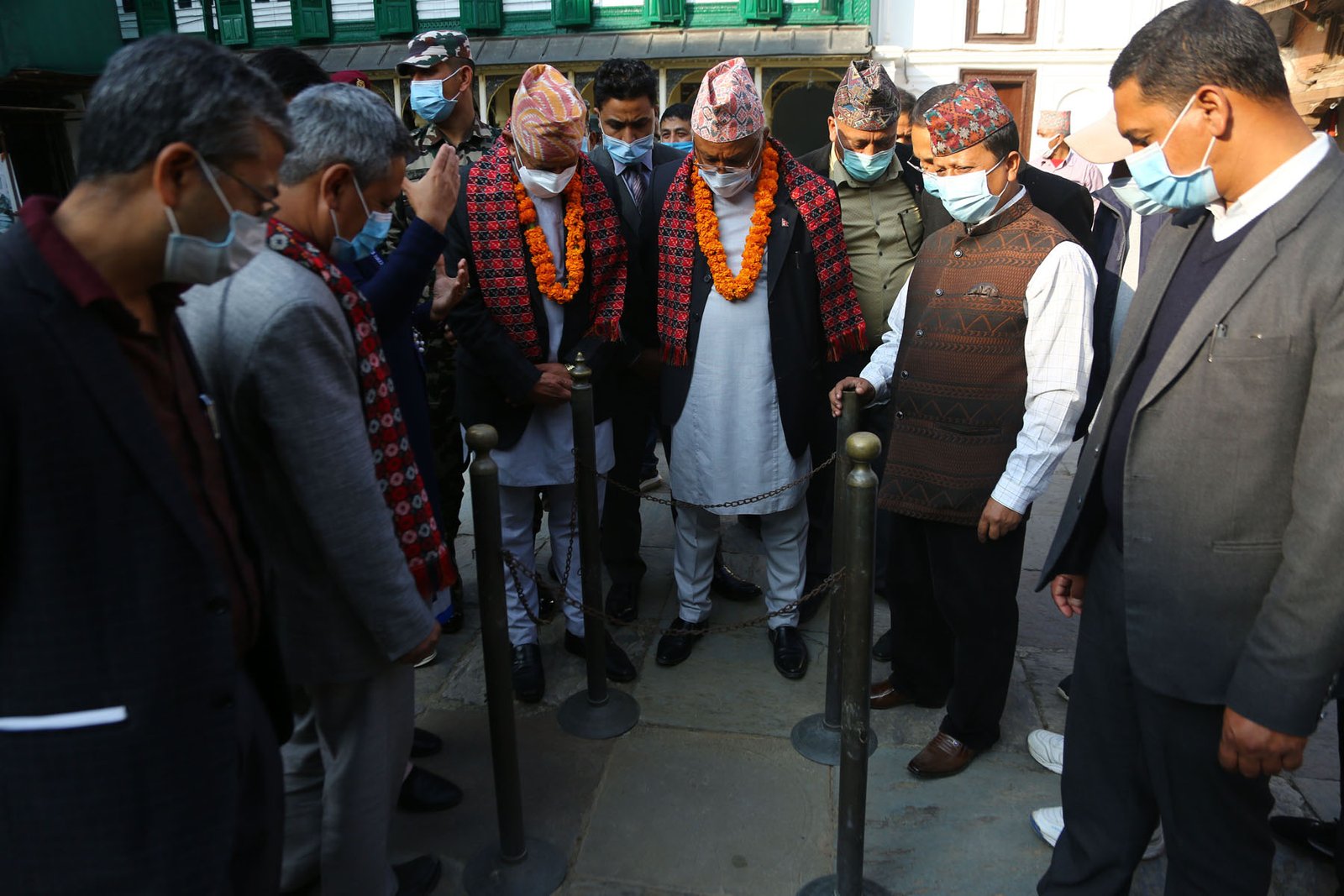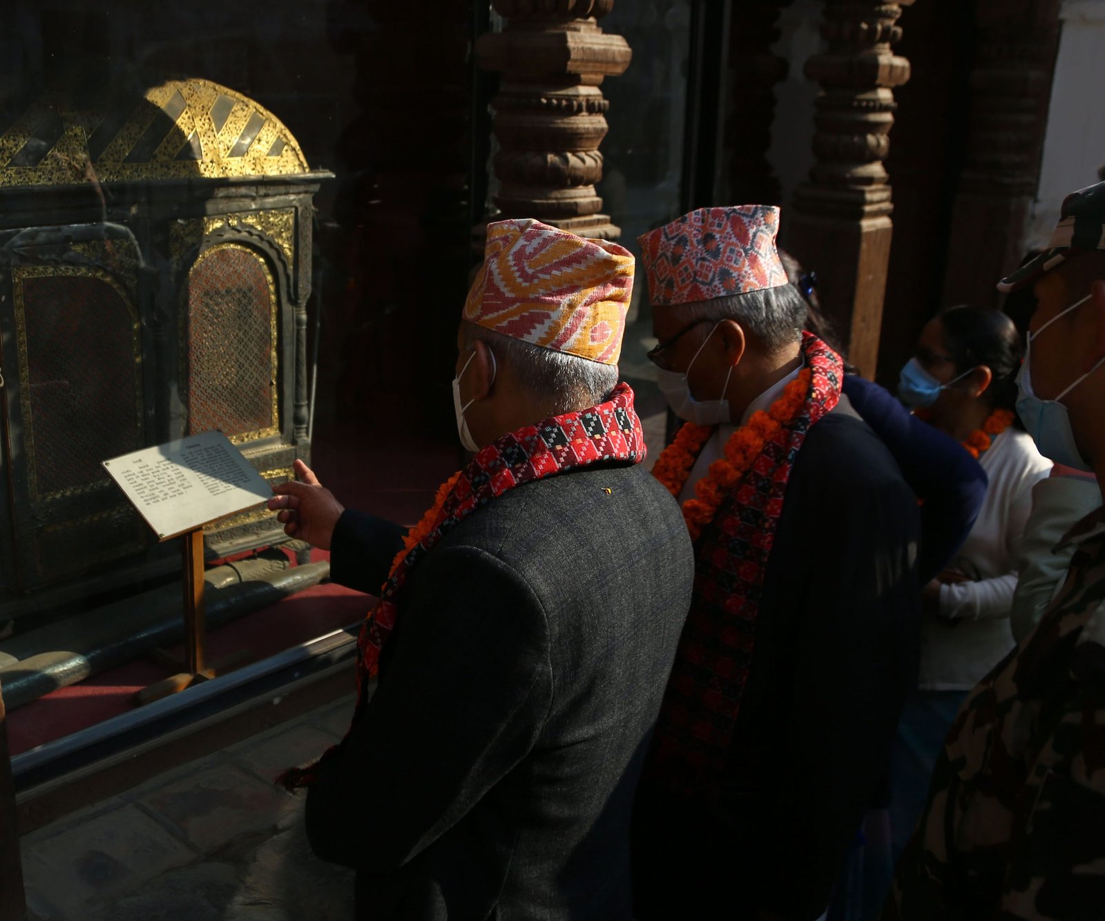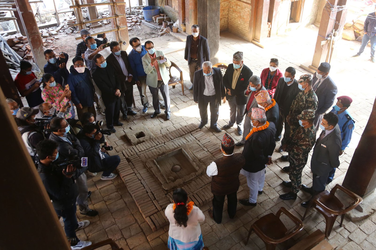 मन्त्री ज्ञवाली र श्रेष्ठले आजै वसन्तपुरस्थित हनुमानढोका दरबार हेरचाह अड्डाभित्र रहेका आगमछेँ, मोहनकाली चोक, कालिदमन चोक, सुन्दरी चोक, नासल चोक र मूल चोकका बारेमा जानकारी लिएका थिए । अड्डाका प्रमुख सन्दीप खनालले गोर्खा भूकम्पकै कारण क्षति भएका अन्य निर्माणाधीन सम्पदाका बारेमा अवगत गराएका थिए ।