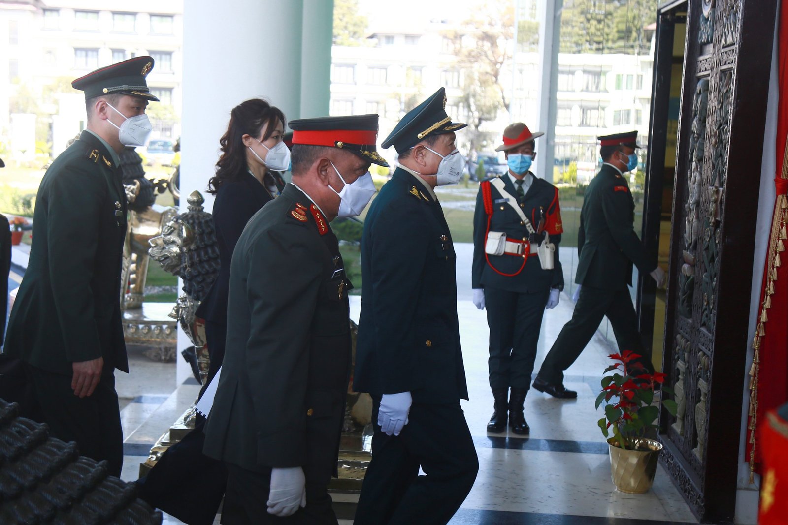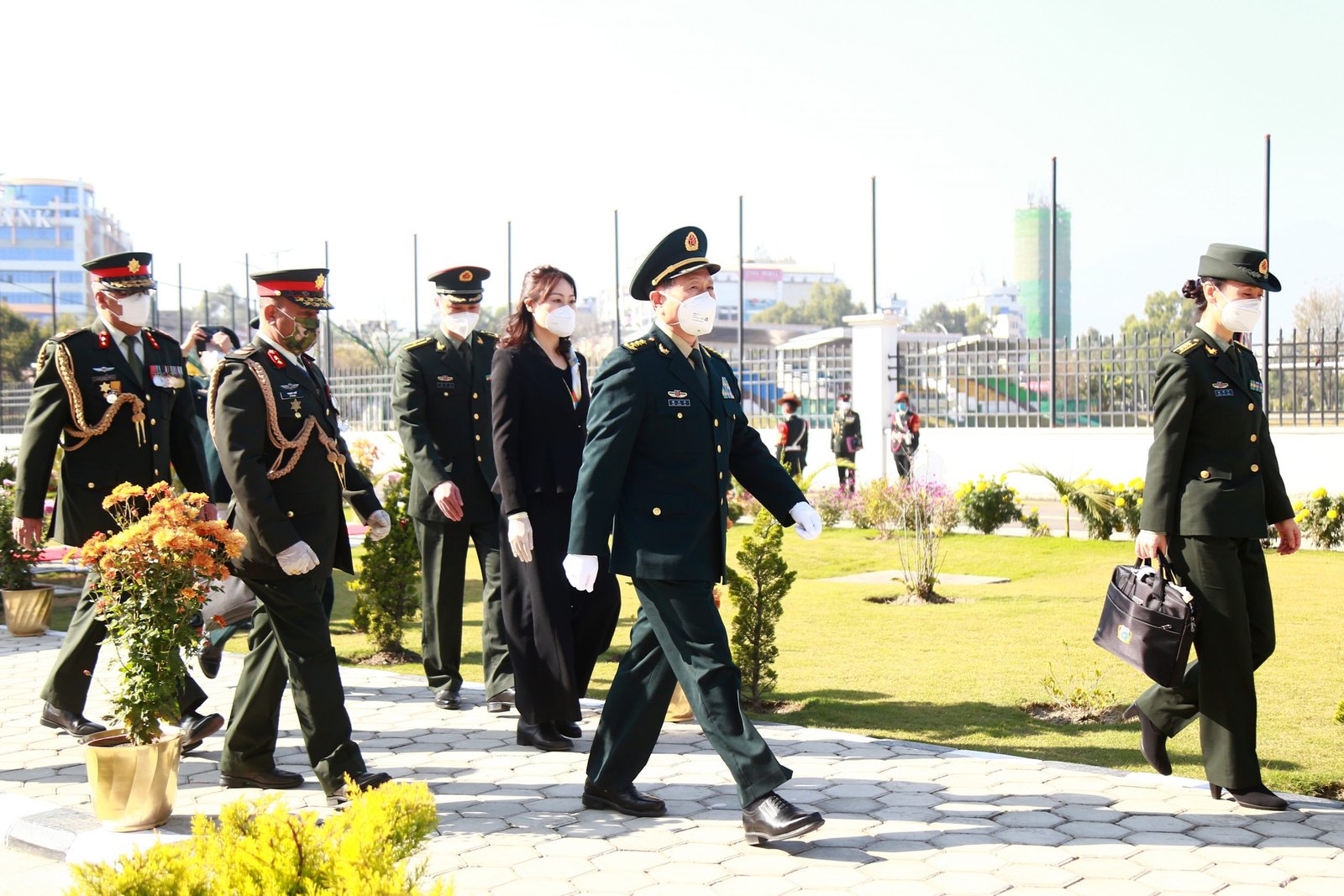 काठमाडौं । नेपाल भ्रमणमा रहेका चीनका रक्षामन्त्री वेइ फेङ्हे नेपाली सेनाको जंगी अड्डा निरीक्षणका लागि पुगेका छन् । भद्रकालीस्थित जंगीअड्डामा नेपाली सेनाको एक टोलीले उनलाई सम्मान गारद अर्पण गरेको थियो ।