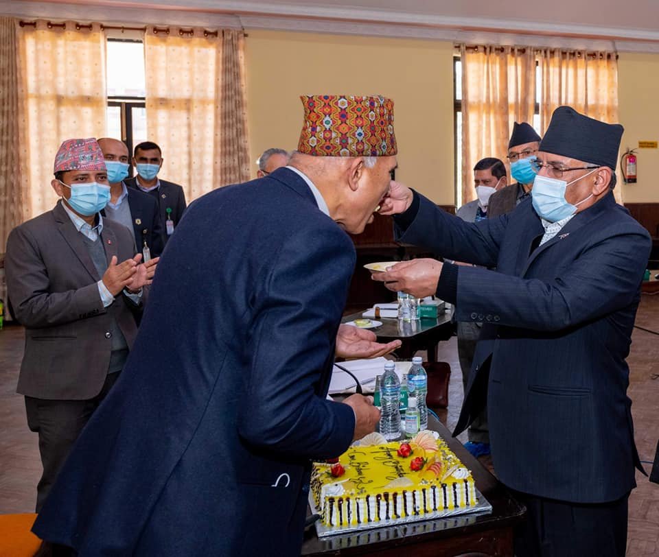 प्रधानमन्त्री तथा अध्यक्ष केपी शर्मा ओली र अर्का अध्यक्ष पुष्पकमल दाहाल“प्रचण्ड, उपप्रधानमन्त्री ईश्वर पोखरेलका साथै वरिष्ठ नेताहरूले केक खुवाएर महासचिवलाई जन्मदिनको बधाई तथा स्वस्थ जीवनको शुभकामना व्यक्त गरेका थिए ।