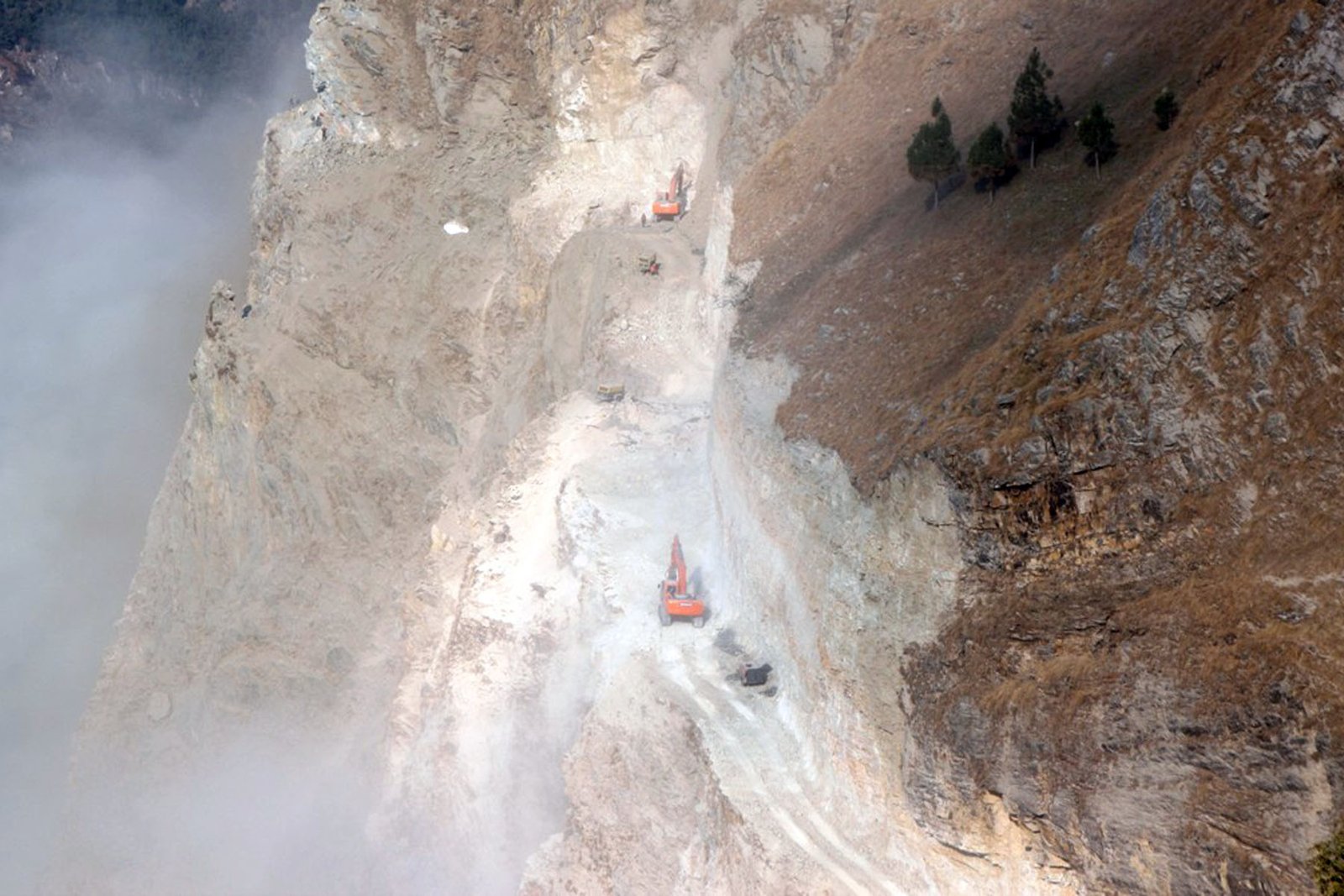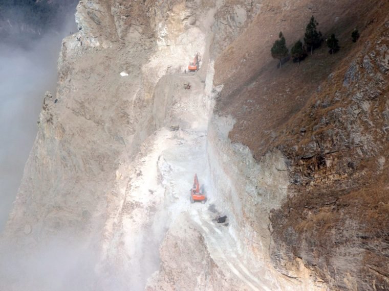 म्याग्दीको रघुगङ्गा गाउँपालिका–४ दग्नामको अजिङ्गर भीरमा डोजरद्वारा सडक खनिँदै । अक्करे भीरबाट सडक निर्माण भएपछि दरमिजा, चिमखोला र कुइनेमङगले गाउँपालिका केन्द्र र सदरमुकाम बेनी आवतजावत गर्न स्थानीयवासीलाई सहज हुनेछ । तस्बिरः कमल खत्री/रासस