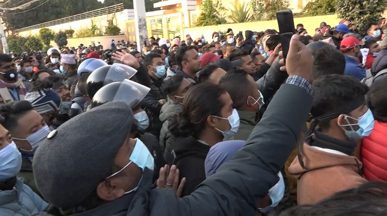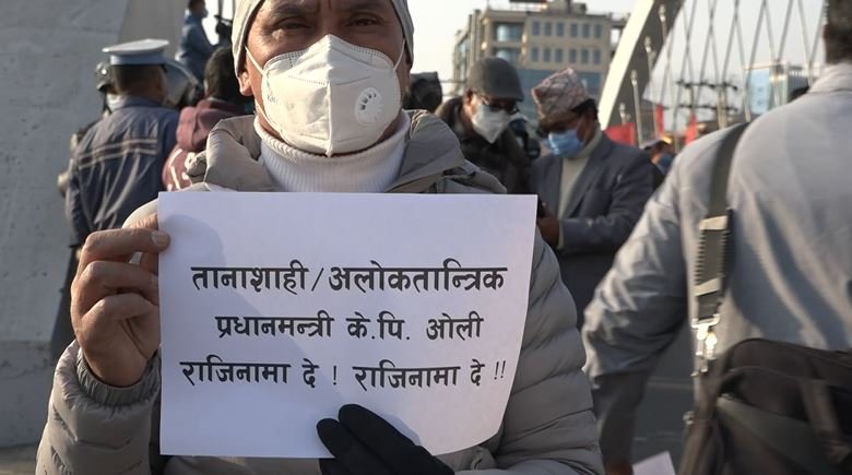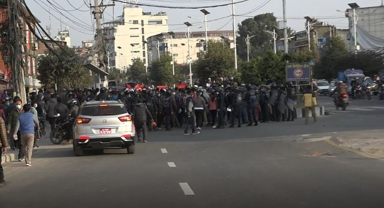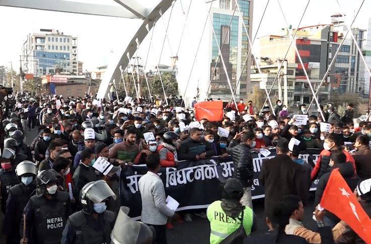 काठमाडौं । सरकारले प्रतिनिधिसभा विघटन गरेपछि नेपाल कम्युनिष्ट पार्टी (नेकपा)का कार्यकर्ताहरु नै सडकमा उत्रिएर विरोध प्रदर्शन गरेका छन् । प्रधानमन्त्री केपी शर्मा ओलीले असंवैधानिक, अलोकतान्त्रिक र निरंकुश कदम चालेको भन्दै नेकपाका जनवर्गीय संगठनका कार्यकर्ताहरुले आइतबार दिउँसो काठमाडौंको माइतीघर मण्डलादेखि नयाँबानेश्वरसम्म प्रदर्शन गरेका हुन् ।