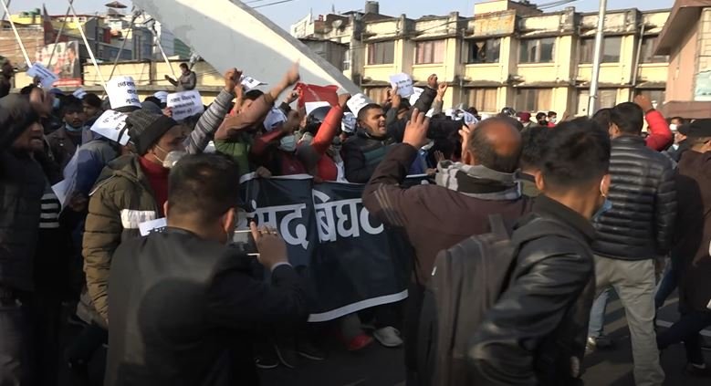 प्रदर्शनमा सहभागी कार्यकर्ताहरुले सरकार विरुद्ध नाराबाजी गरेका थिए । उनीहरुले ‘गैरसंवैधानिक कदम खारेज गर’, ‘संसद विघटन जनमतको धोका हो’, लगायत लेखिएका ब्यानर र प्लेकार्ड लिएर नारखबाजी गरेका थिए ।