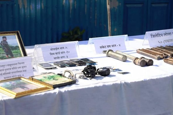 त्यस्तै टेन्ट, सेफ्टी फ्युजलगायतका २२ प्रकारका सामग्री बरामद गरेको जिल्ला प्रहरी कार्यालयका प्रहरी प्रमुख प्रहरी नायब उपरीक्षक नवराज मल्लले जानकारी दिए । आइतबार मैदानेमा नेपाल प्रहरी र सशस्त्र प्रहरीको संयुक्त गस्ती टोली र नेकपाका कार्यकर्ताबीच दोहोरो भिडन्त भएको थियो । भिडन्तमा मानवीय क्षति भने नभएको प्रहरीको भनाइ छ ।