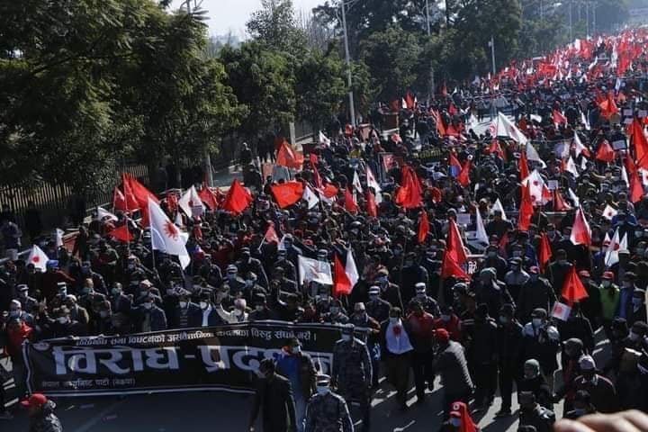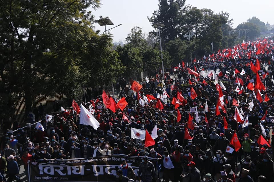 काठमाडौं । प्रतिनिधिसभा विघटनको विरोधमा नेकपाको प्रचण्ड नेपाल समूहले देशैभर प्रदर्शन गरेको छ । काठमाडौंमा भएको विरोध प्रदर्शनपछि भृकुटीमण्डपमा आयोजित सभालाई शीर्ष नेताहरुले सम्बोधन गरेका थिए ।