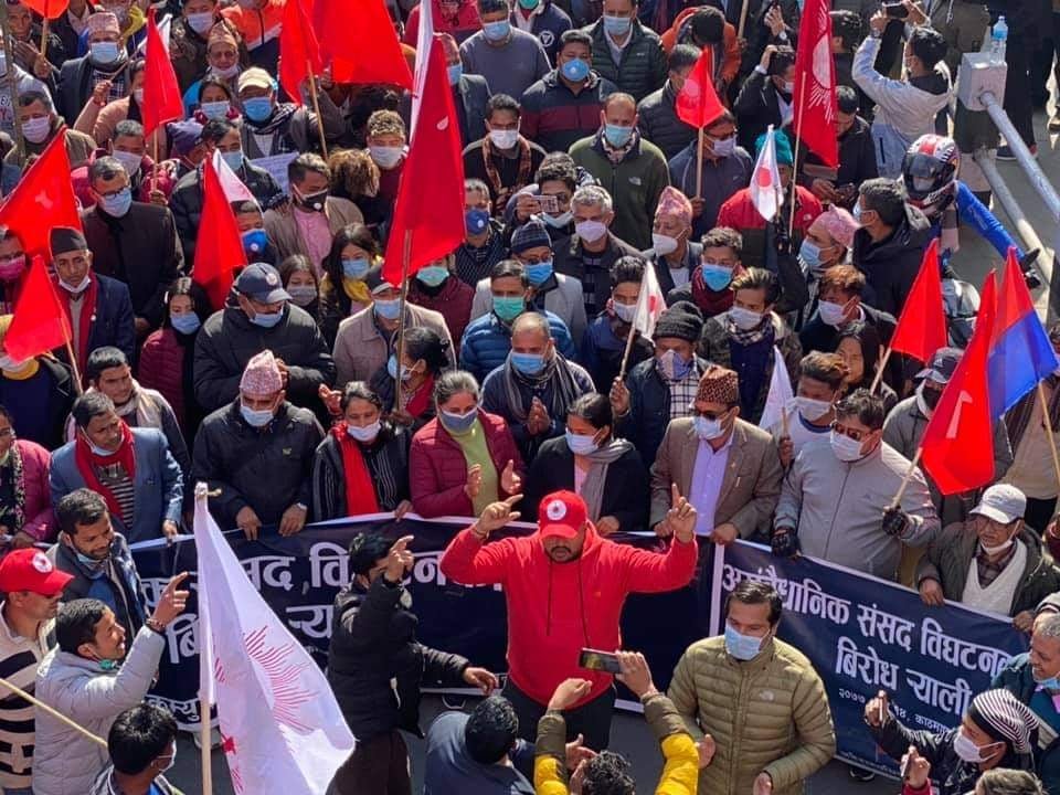 विरोधसभा अघि काठमाडौंका विभिन्न स्थानबाट जुलुस निस्किएको थियो । विरोध सभालाई अध्यक्षद्वय पुष्पकमल दाहाल प्रचण्ड र माधवकुमार नेपाल, वरिष्ठ नेता झलनाथ खनाल र बागमती प्रदेशकी इन्चार्ज अष्टलक्ष्मी शाक्यले सम्बोधन गरेकी थिइन् । विरोध सभालाई सम्बोधन गर्दै नेताहरुले प्रतिनिधिसभा विघटन गर्ने प्रधानमन्त्रीको कदम प्रतिगामी भएको भन्दै विरोध गरेका छन् ।