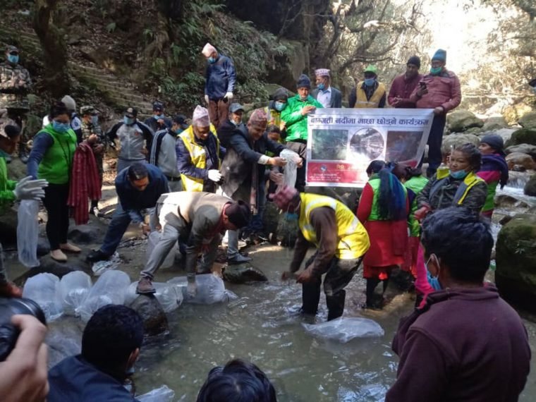अधिकारसम्पन्न वाग्मती सभ्यता एकीकृत विकास समितिको आयोजनामा भएको कार्यक्रममा शहरी विकास राज्यमन्त्री रामवीर मानन्धर, समितिका अध्यक्ष उद्धवप्रसाद तिमल्सिनालगायत अभियानकर्मीले शहर र गर्दी जातिका ४०० माछाका भुरा छाडेका हुन् ।