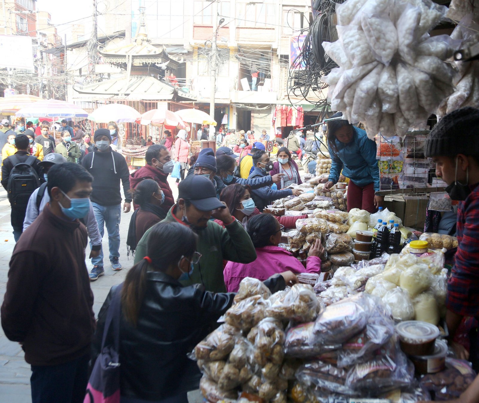 भोली परेको माघेसङ्क्रान्ति पर्वमा खान काठमाडौँको असनमा तरुल किन्दै उपभोक्ता । मकर सङ्क्रान्तिमा घिउ, चाकु, तिलको लड्डु, तरुल, पिडालुलगायत परिकार खाने गरिन्छ । तस्बिरः रोशन सापकोटा/रासस