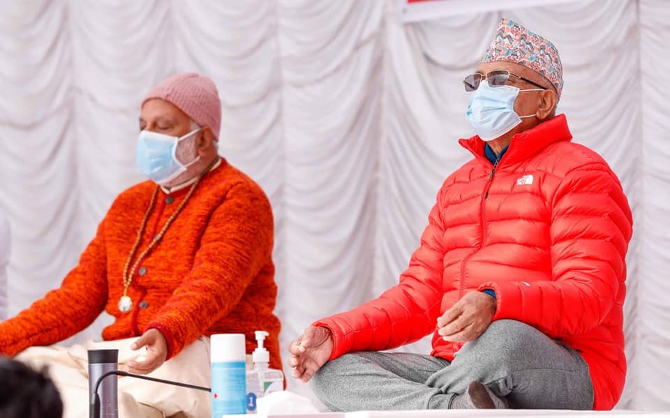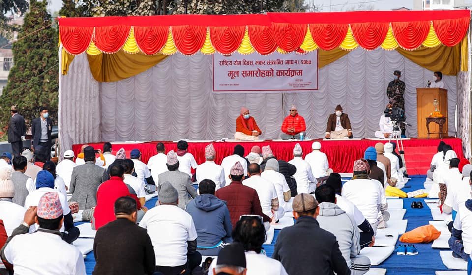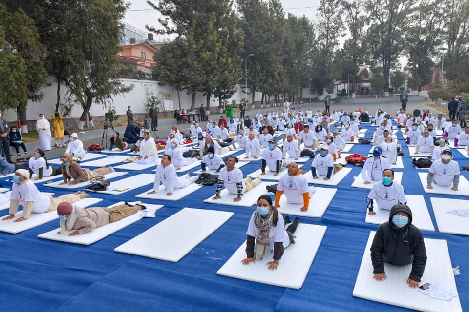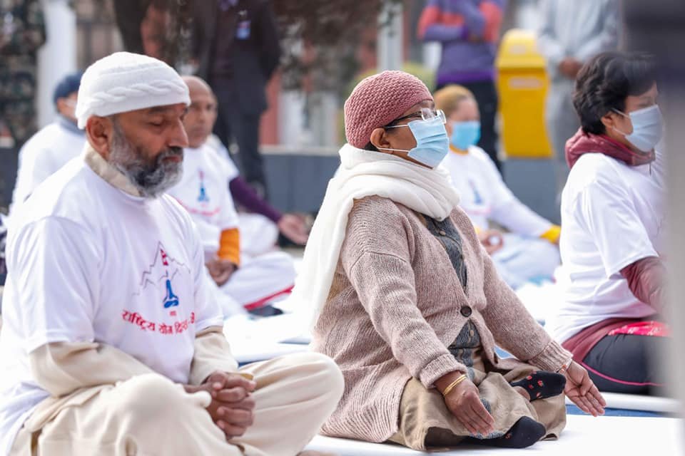काठमाडौं । राष्ट्रिय योग दिवस मूल समारोह समितिको आयोजनामा आज दिवस मनाइएको छ । ‘गरौँ योग डटेर, कोभिड जान्छ हटेर’ भन्ने आदर्श वाक्यका साथ प्रधानमन्त्री निवास बालुवाटारमा मनाइएको दिवसमा प्रधानमन्त्री केपी शर्मा ओली, मन्त्री, उच्च कर्मचारी, योगगुरु, अभ्यासकर्ता, शिक्षाकर्मीलगायत सहभागी थिए ।