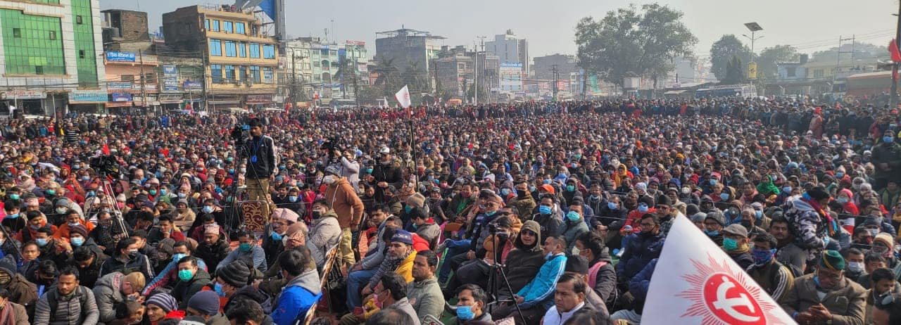 संसद विघटनविरुद्ध बिहीवार बुटवलमा लुम्बिनी प्रदेशस्तरीय विरोध प्रदर्शनपछि आयोजित सभालाई सम्बोधन गर्दै अध्यक्ष नेपालले प्रतिगमनविरुद्ध एकजुट हुन आग्रह गरेका हुन् ।