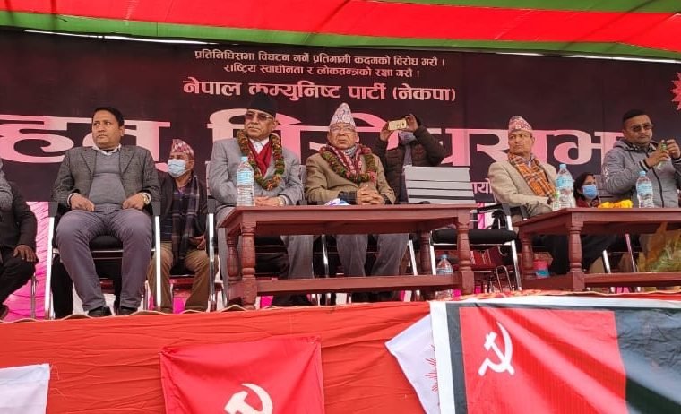 उनले असंवैधानिक कदम चाल्ने ओलीलाई दण्ड दिने बताए । उनले ओली र उहाँका पिछलग्गुहरुले पार्टी र चुनाव चिन्ह आफ्नो पार्न सेटिङ गरिरहेको भने पनि त्यसलाई जनताको बलले भत्काइदिने बताए । उनले निरंकुशताको विरोधमा सडकमा उत्रिएका जनतालाई हेप्ने काम नगर्न चेतावनी दिए ।