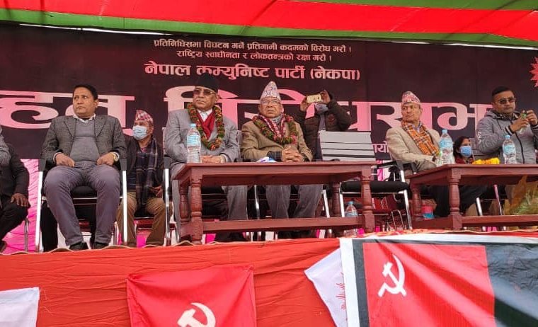 प्रतिनिधिसभा विघटनविरुद्ध शनिबार पार्टीद्वारा धनगढीमा आयोजित विरोधसभामा अध्यक्ष नेपालले इतिहासका पाङ्ग्रा फेरि पछाडि जान नसक्ने दावी गर्दै भने, “प्राप्त उपलब्धिको रक्षाका लागि जनताले हरेश खानुपर्ने आवश्यक छैन, तपाईँहरुको साथमा हामी छौँ ।”