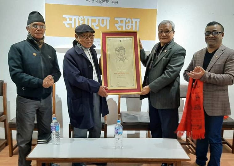 काठमाडौं । नेपाली व्यङ्ग्य चित्र क्षेत्रमा महत्वपूर्ण योगदान दिएका अग्रज कलाकार टेकवीर मुखिया र प्रा रामकुमार पाँडे सम्मानित भएका छन् । साधारणसभाको अवसर पारेर नेपाल कार्टुनिस्ट क्लबले हरेक वर्ष प्रदान गर्दै आएको ‘बराथा स्मृति सम्मान’ २०७५ र २०७६ क्रमशः मुखिया र पाण्डेलाई दिइएको हो ।