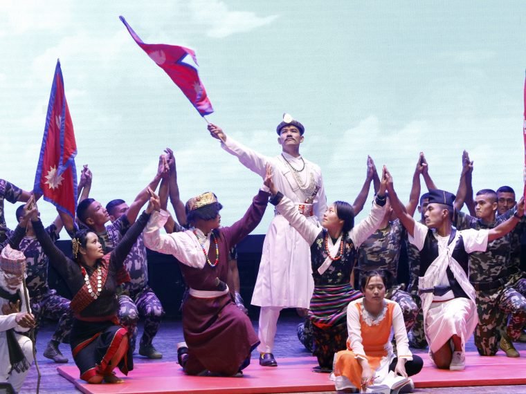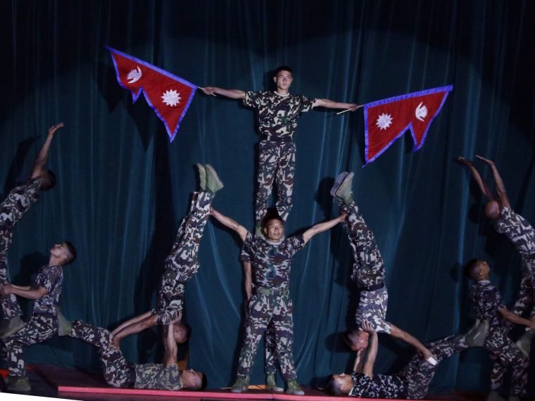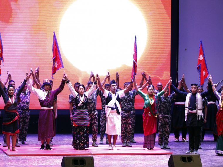 नेपाली सेनाद्वारा जङ्गी अड्डामा आइतबार आयोजित एकीकरण मार्ग कार्यक्रम दोस्रो वृहत सेमिनारको समापन समारोहमा सैनिकबाट कला कौशल प्रदर्शन । तस्वीर: रत्न श्रेष्ठ, रासस