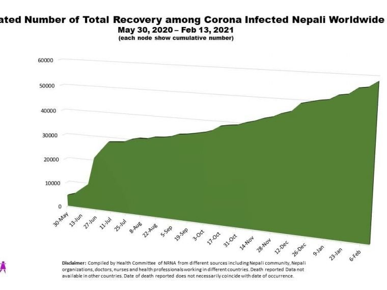 तीमध्ये ५८ हजार ४ सय ३२ जना कोरोना संक्रमण मुक्त भएका छन् । संक्रमणमुक्त हुने दर ९७ प्रतिशत छ । गैरआवासीय नेपाली संघको स्वास्थ्य समितिका अनुसार यो साता अष्ट्रेलिया, स्पेन, बेलायत, युएई, साउदी अरबमा रहेका थप नेपालीहरुमा कोरोना संक्रमण देखिएको छ ।