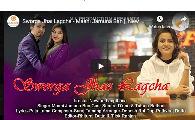 युवा पुस्तामाझ लोकप्रिय गायिका जमुना वन ‘स्वर्ग झैं लाग्छ..’.गीत लिएर आएकी छन् । पूजा लामाको शब्द रहेको गीतको सुरज राईले कम्पोज गरेका छन् भने देवेश राई एरेन्जर हुन् ।