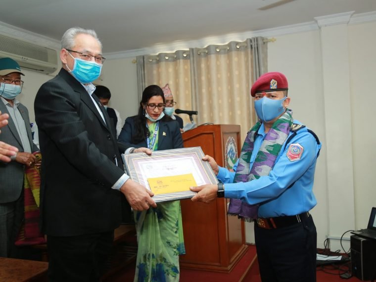 गृह मन्त्रालयमा आइतबार आयोजित कार्यक्रममा गृहमन्त्री रामबहादुर थापाले प्रहरी महानिरीक्षक शैलेश थापा क्षेत्रीलाई नेपाल प्रहरीले सर्वोत्कृष्ट स्थान हासिल गरेकोमा नगद १० हजार रुपैयाँ पुरस्कार सहित प्रंशासापत्र प्रदान गरे ।