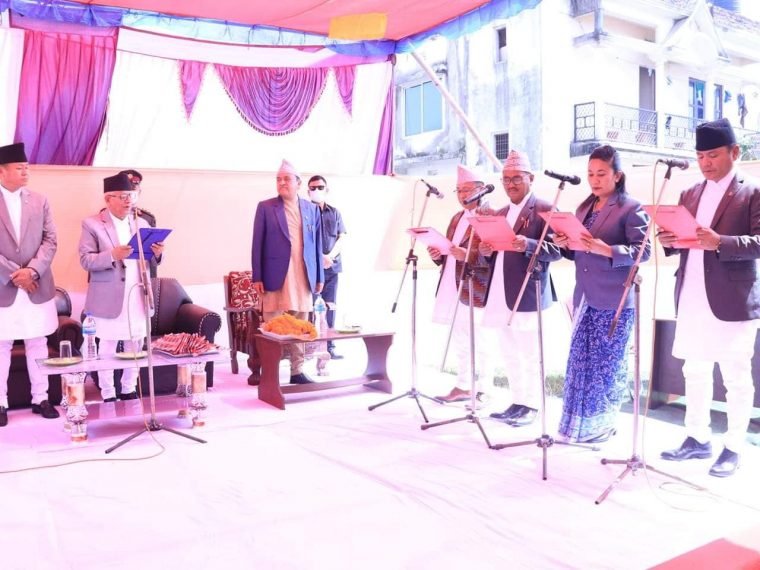 विराटनगर । प्रदेश एक सरकारका नवनियुक्त मन्त्रीहरुले शपथ लिएका छन् । आर्थिक मामिला तथा योजनामन्त्री टंक आङबोहाङ, सामाजिक विकासमन्त्री उषाकला राई, भूमि व्यवस्था कृषि तथा सहकारी राज्यमन्त्री राम राना, भौतिक पूर्वाधार राज्यमन्त्री अम्बिरबाबु गुरुङले सपथ लिएका हुन् । यस्तै, कृषि राज्यमन्त्री कला घले र वन तथा राजकुमार ओझाले पनि आजै सपथ लिएका छन् ।