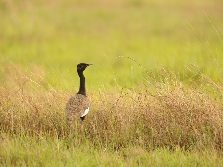 खरमयुरको बास स्थानका रुपमा रहेको घाँसे मैदान र खरका फाँटमा बर्सेनि लाग्ने डढेलोले समस्या निम्त्याउँदै आएको छ । उक्त मयुरको अधिक सङ्ख्या रहेको निकुञ्जका रुपमा यसलाई लिइने गरिन्छ । पोथी र अर्धवयस्क खरमयुर खैरो र कैलो हुने गर्दछ । यसको लम्बाइ ६६ सेन्टिमिटरसम्म हुने गर्दछ ।