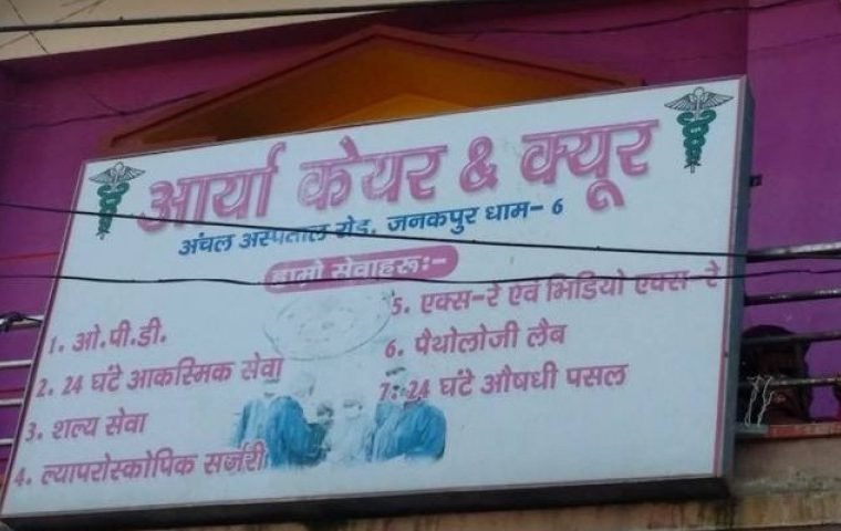जनकपुरधामस्थित आर्या केयर अस्पतालमा धनुषाकी क्षीरेश्वरनाथ नगरपालिका–५ महेन्द्रनगर कुचाई टोलकी ३० वर्षीया बेगम खातुन चार दिनदेखि बन्धक बनेकी हुन् । ब्यथा लागेपछि यही असार १७ गते खातुन अस्पताल भर्ना भएकी थिइन् । शल्यक्रिया गरी एक छोरा र एक छोरी जुम्ल्याहा बच्चा जन्म दिएकी खातुनलाई असार २१ गते नै अस्पतालले डिस्चार्ज गरेको थियो तर उपचार खर्चबापत एक लाख १० हजार बुझाउन नसक्दा उनी चार दिनदेखि बन्धक बनेकी छन् ।