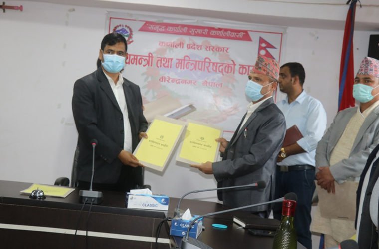 कर्णाली । कर्णाली प्रदेश सरकारका मुख्यमन्त्री महेन्द्रबहादुर शाहीले विभागीय मन्त्रीहरुसँग आज कार्यसम्पादन सम्झौता गरेका छन् ।