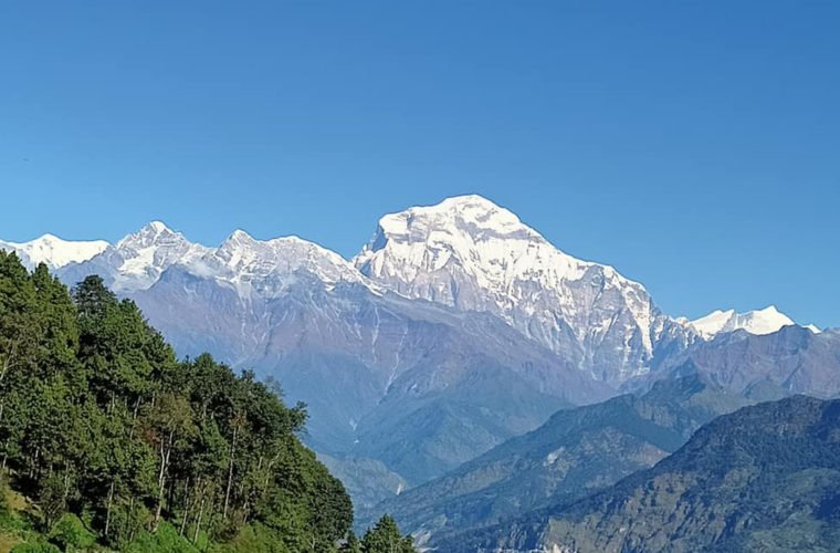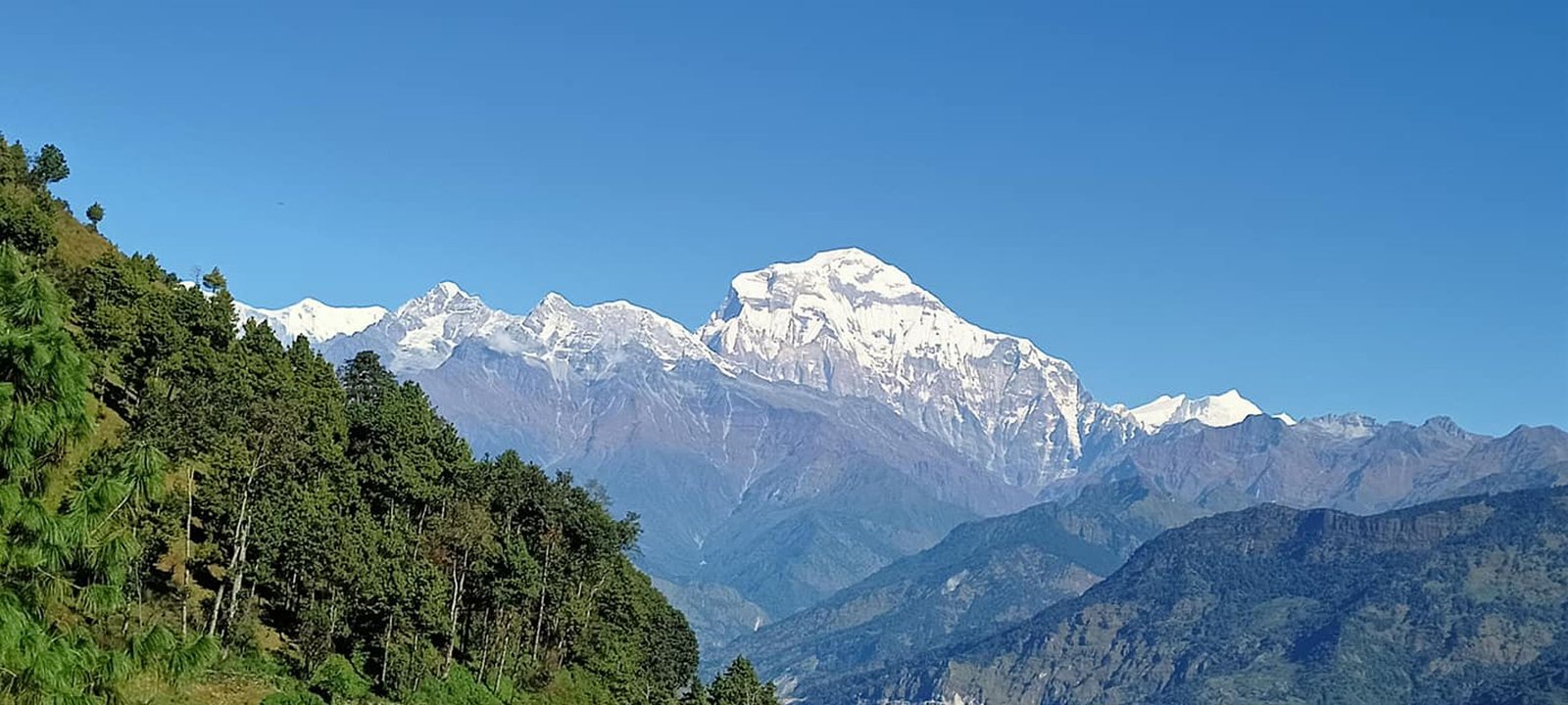 तनहुँको व्यास नगरपालिका–११ स्थित तनहुँसुरबाट देखिएको अन्नपूर्ण हिमाल । मौसम खुलेको बेला यहाँबाट मनमोहक हिमालको दृश्य देखिन्छ ।