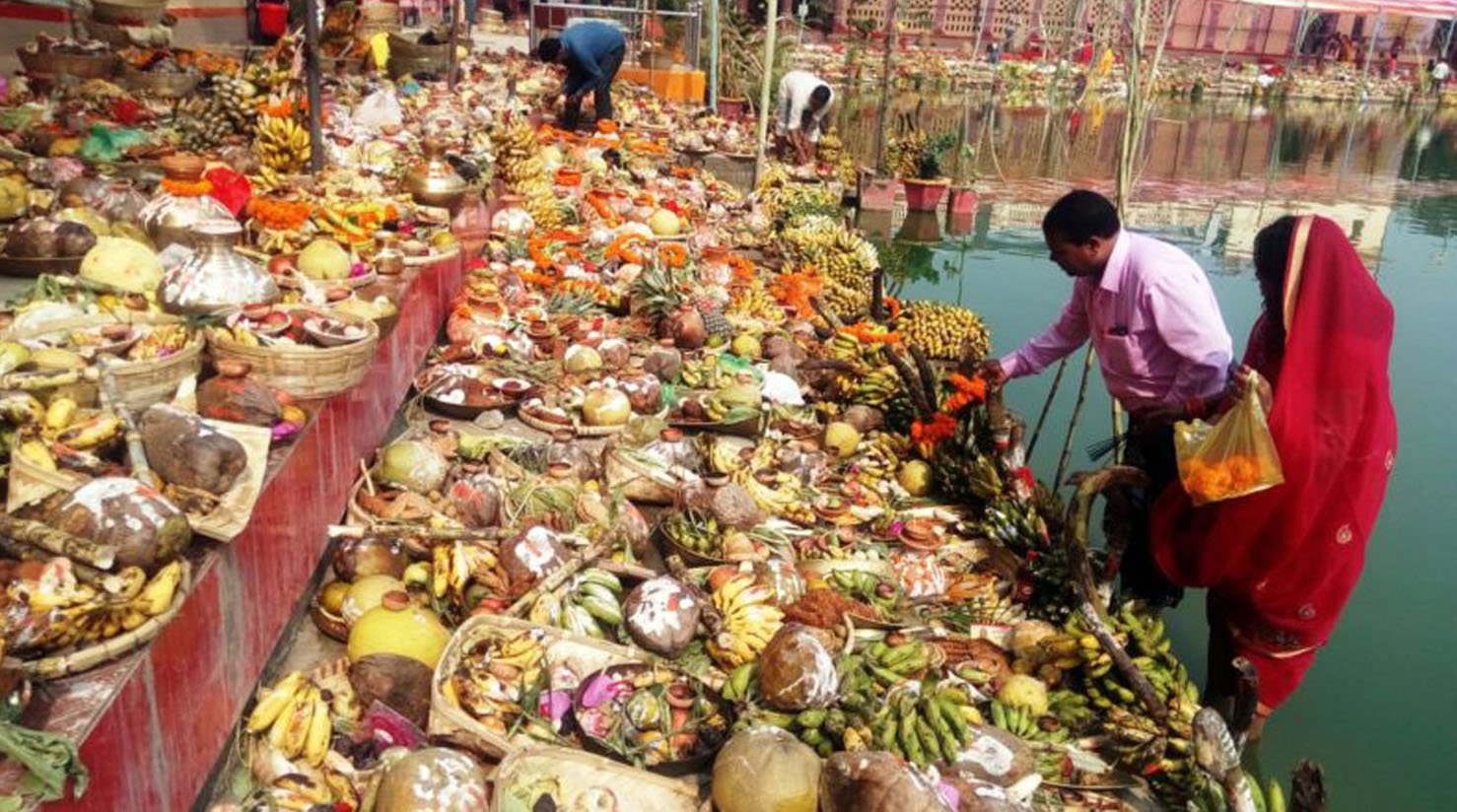 जनकपुरधाम । छठ पर्वमा आज अस्ताउँदो सूर्यलाई अर्घ दिन भक्तजनले जनकपुरका पोखरी, तलाउमा पूजाका सामग्री सजाइएका छन् । रातिदेखि नै छठ पूजाको सामग्री लिएर भक्तजन घाट आउन थालेका छन् ।