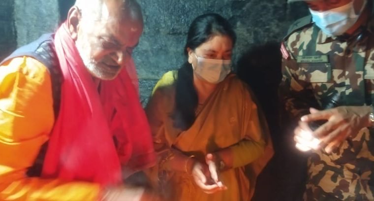 महोत्तरी । राष्ट्रपति विद्यादेवी भण्डारीले महोत्तरी जिल्लाको सदरमुकाम जलेश्वरस्थित बाबा जलेश्वरनाथ महादेव मन्दिरमा पूजाअर्चना गरेकी छन् । सोमबार राष्ट्रपति भण्डारी पूजाअर्चना र दर्शनका लागि यहाँ आउने भएपछि नेपाली सेनाले गुफाबाट पानी बाहिर निकालेको र त्यसपछि राष्ट्रपति भण्डारी गुफागृहमै प्रवेश गरेर पूजाअर्चना गरेकी थिइन् ।