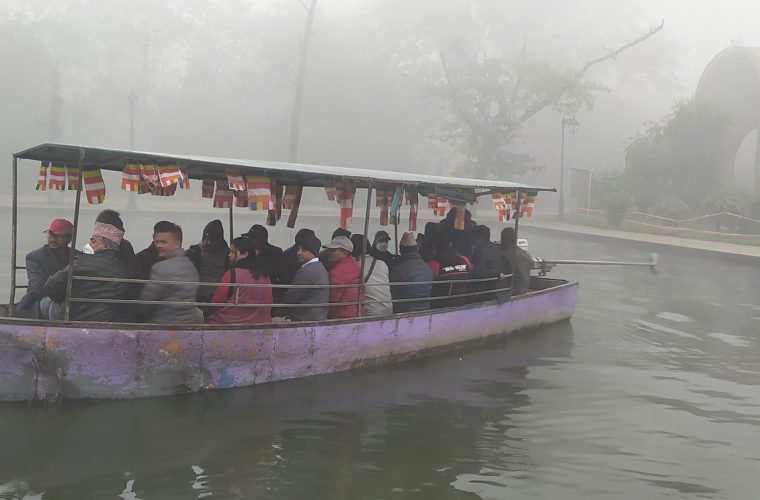 लुम्बिनीस्थित केन्द्रीय नहरमा डुङ्गामा सयर गर्दै आगन्तुक । लुम्बिनीमा पछिल्लो समय आन्तरिक पर्यटकको सङ्ख्या दिनानुदिन बढ्दै गएको छ ।
