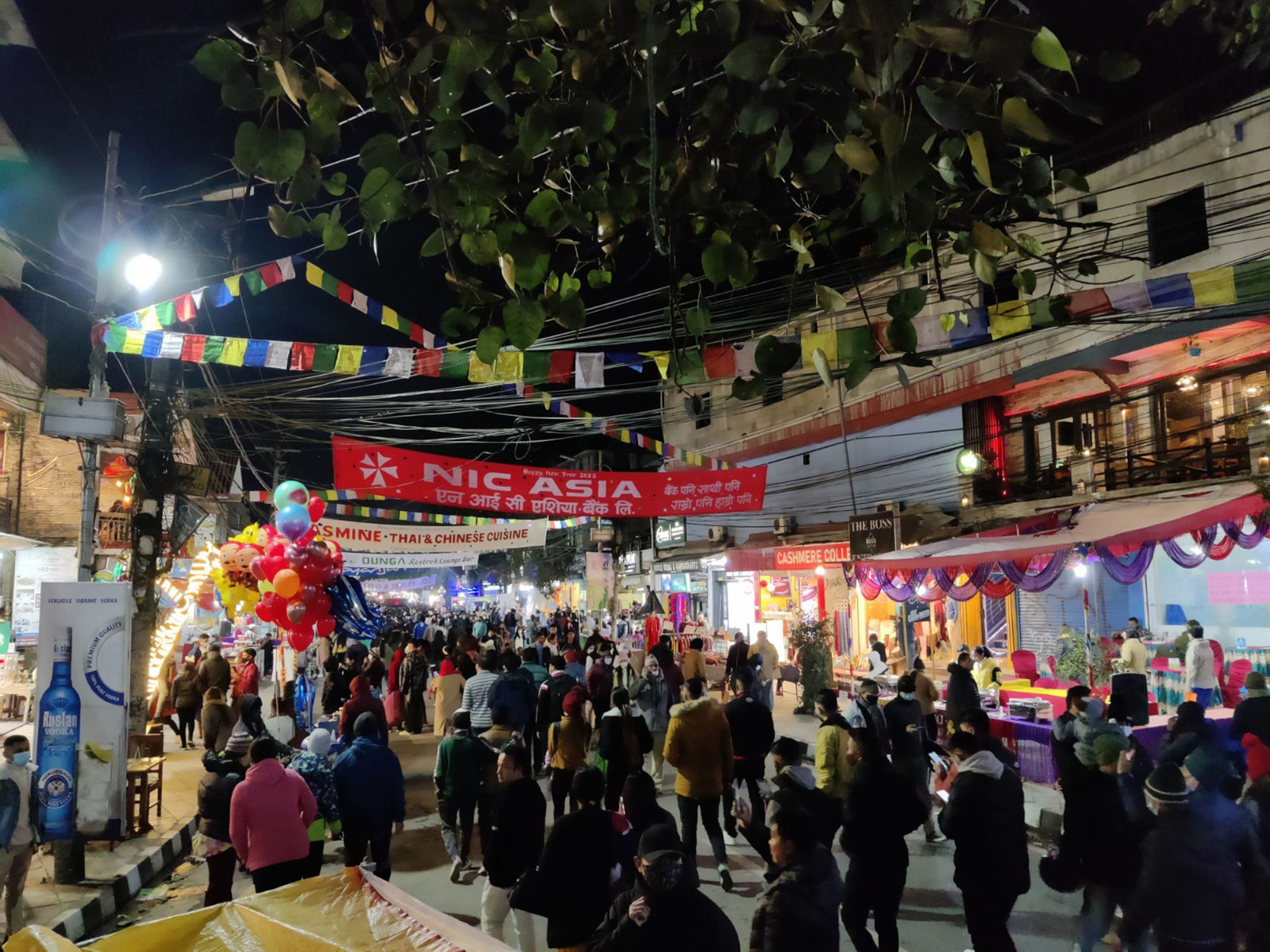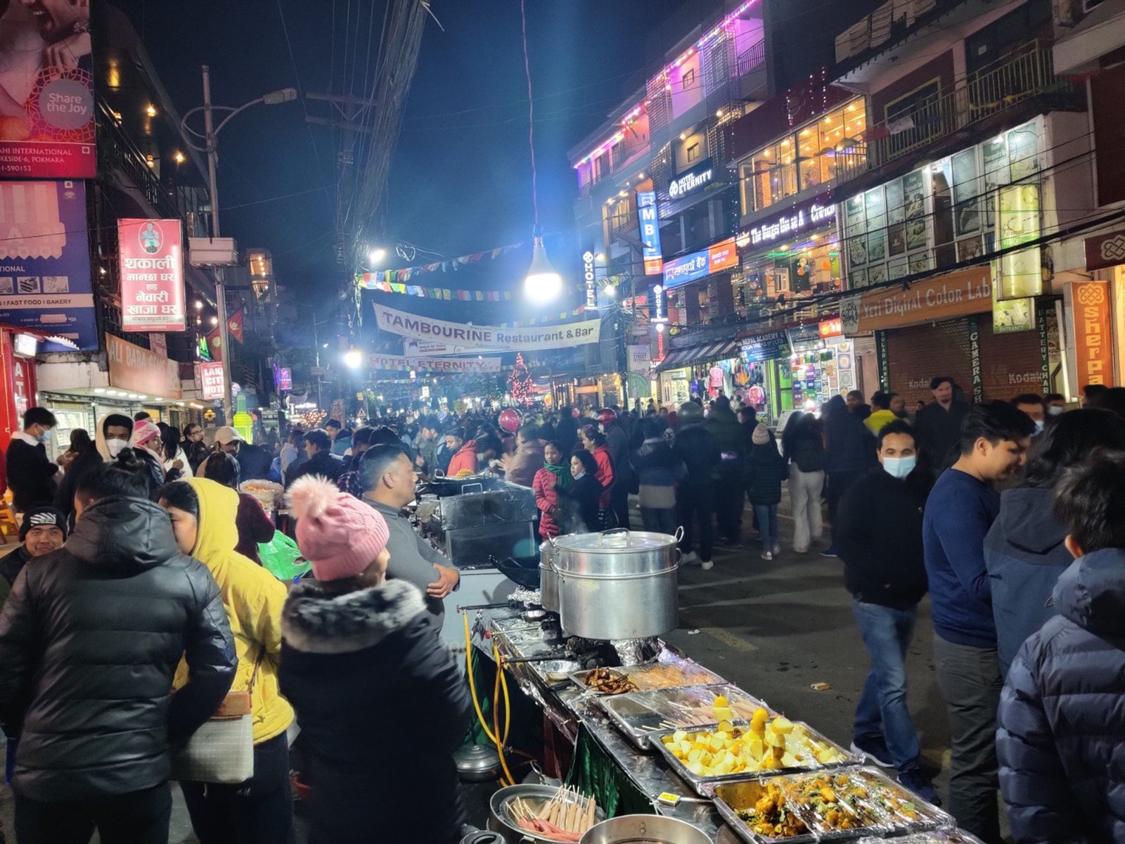 अंग्रेजी नयँ वर्षको पूर्व सन्ध्यामा पोखराको लेकसाइडमा रौनक । रेस्टुरेन्ट एन्ड बार एशोसिएशन (रेवान)पोखराले आयोजना गरेको २३औँ सडक महोत्सवमा शुक्रबार रात्ति लेकसाइडमा अंग्रेजी नयाँ वर्ष मनाउने सर्वसाधारणको भिड ।
