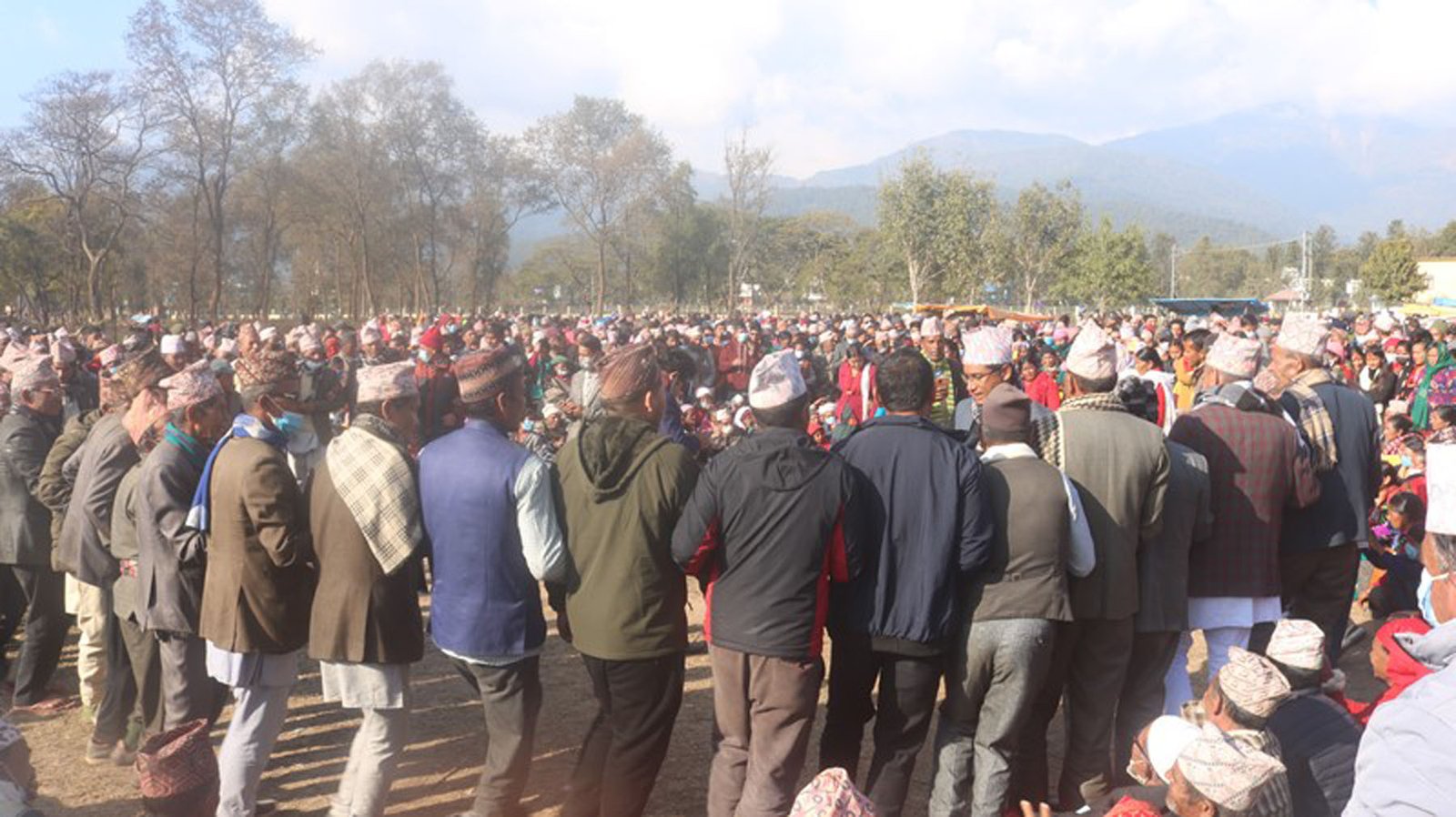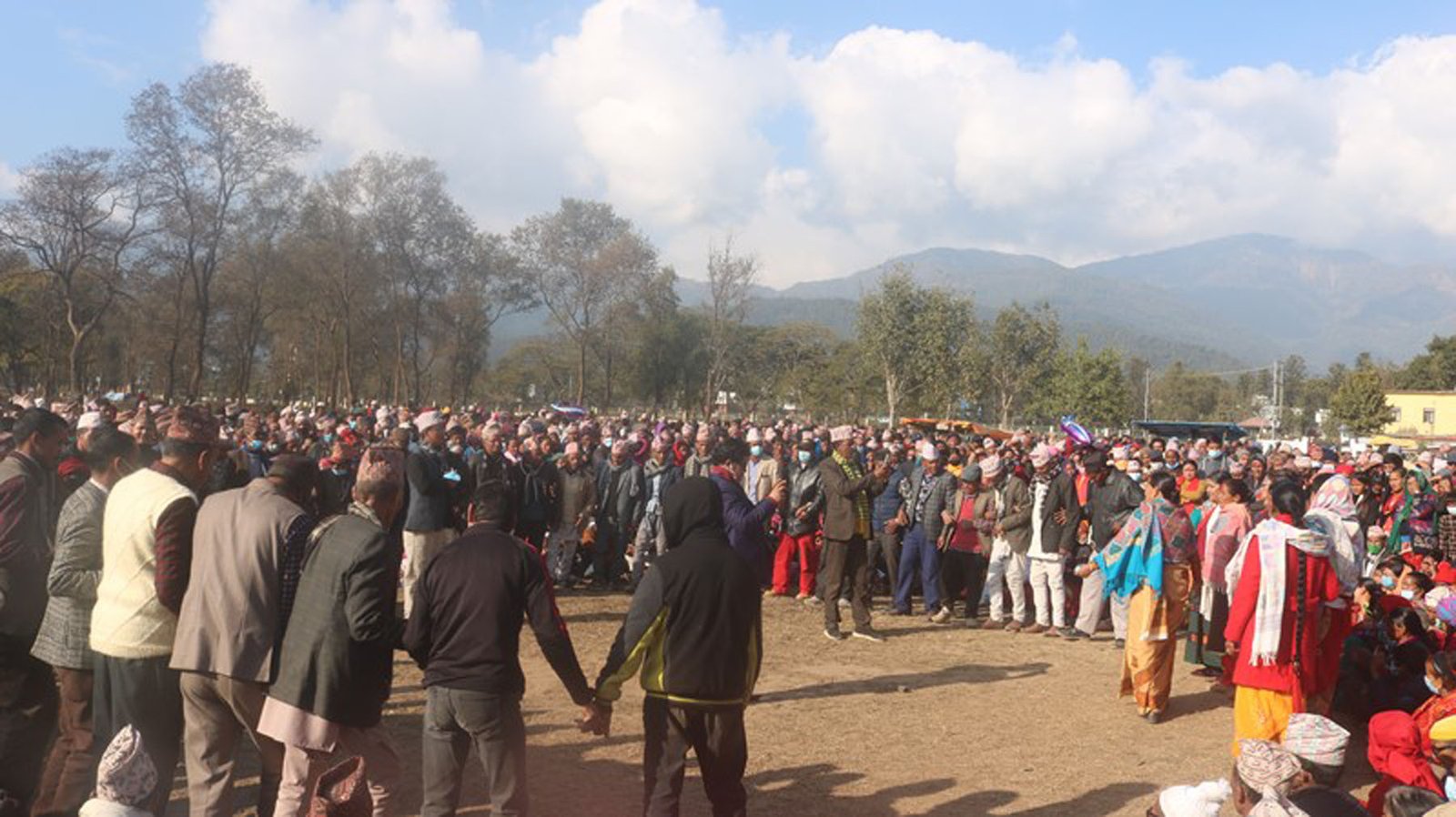 कर्णाली प्रदेशको राजधानी वीरेन्द्रनगर सुर्खेतमा साविक कर्णालीवासी पुरुषहरु देउडा खेलेर माघे सङ्क्रान्ति मनाउँदै ।
