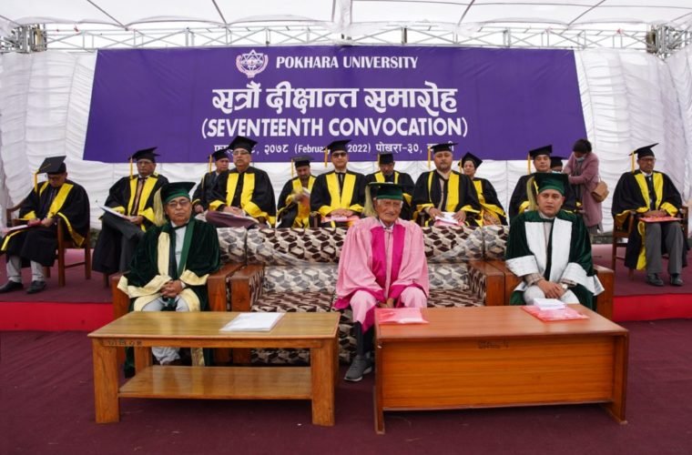पोखरा । पोखरा विश्वविद्यालयद्वारा सञ्चालित विभिन्न शैक्षिक कार्यक्रममा उत्तीर्ण भएका ११ हजार २६८ विद्यार्थी दीक्षित भएका छन् । पोखरा महानगरपालिका–३० खुदीस्थित विश्वविद्यालय प्राङ्गणमा आइतबार आयोजित १७ औँ दीक्षान्त समारोहमा विसं २०७५ चैत २० गतेदेखि विसं २०७८ फागुन १ गतेसम्म शैक्षिक कार्यक्रममा उत्तीर्ण ती विद्यार्थीलाई दीक्षित गरिएको विश्वविद्यालयले जनाएको छ ।