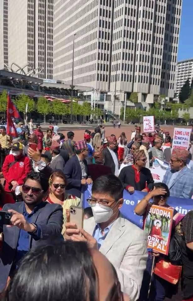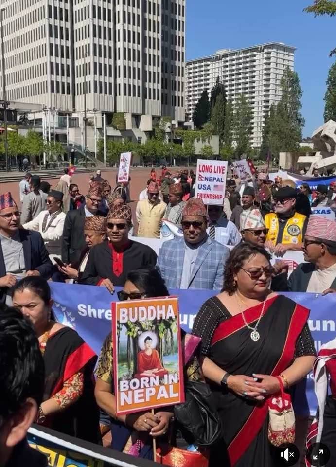 ‘भगवान गौतम बुद्ध नेपालमा जन्मिएका हुन, अमेरिका-नेपालबीचको मैत्रीपूर्ण सम्बन्ध चीरकाल रहोस्’ जस्ता प्लेकार्ड र नेपालको झण्डा बोकेका सयौं नेपाली युवायुवती, बालबालिका एवम् बृद्धबृद्धाहरू समेत मार्चपासमा सहभागी भएका थिए ।