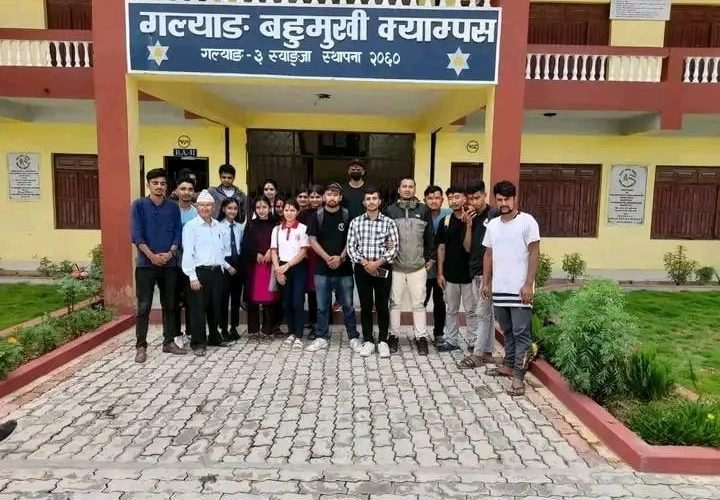स्याङ्जा । स्याङ्जाको गल्याङ नगरपालिकास्थित गल्याङ बहुमुखी क्याम्पसमा युवा रेडक्रस सर्कल नयाँ कार्य समिति गठन गरिएको छ । गल्याङ नगरपालिकामा आफ्नो छुट्टै पहिचान बनाएको गल्याङ बहुमुखी क्याम्पस युवा रेडक्रस सर्कलले सोमबार गल्याङ बहुमुखी क्याम्पासको सभा हलमा एक कार्यक्रम गरि गल्याङ रेडक्रस सर्कलको नयाँ कार्य समिति गठन गरेको छ ।