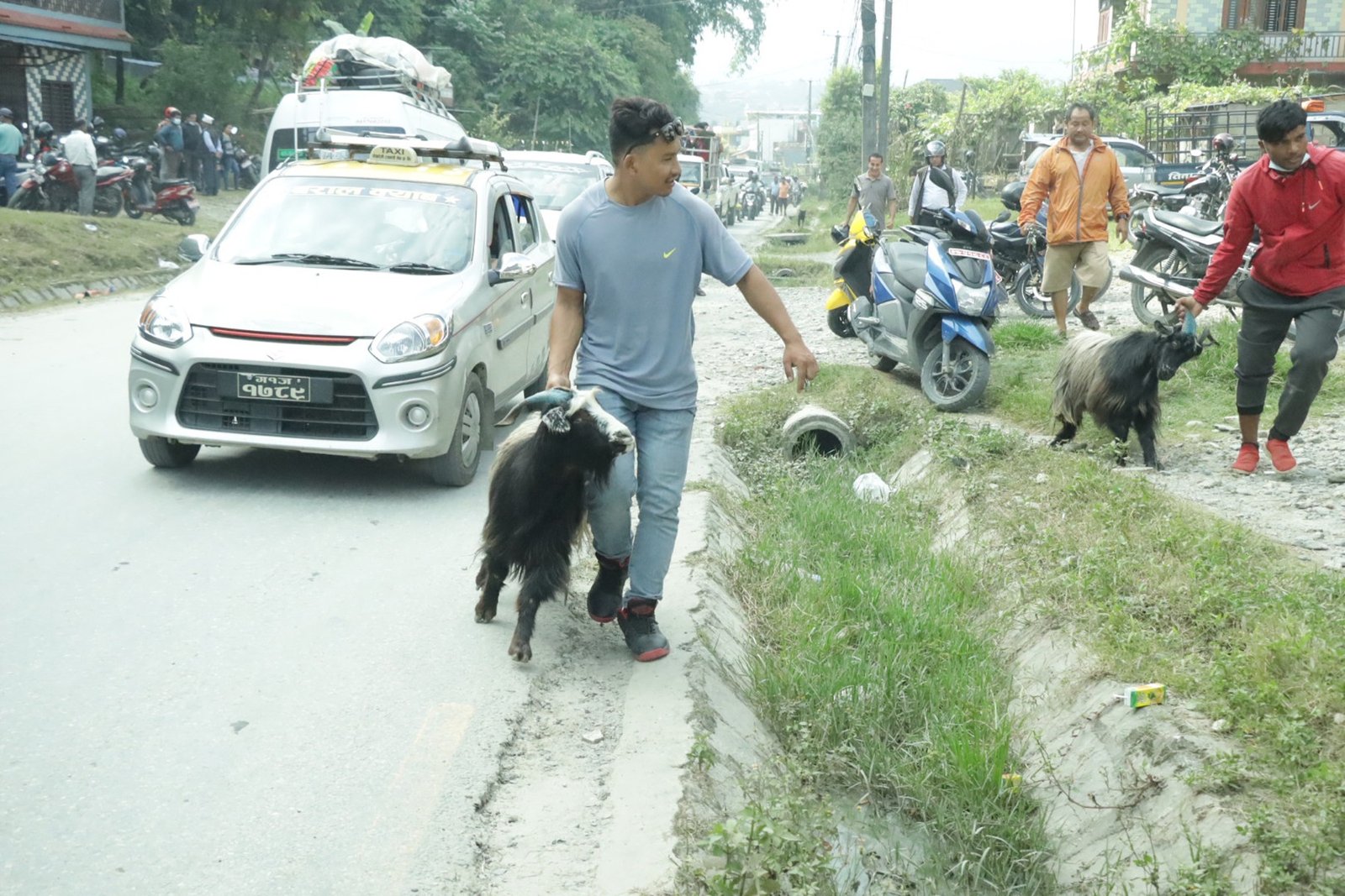 पोखरा । पोखराको सिमपानीमा बिक्रीका लागी राखिएका च्याङग्राहरु । पोखराको सिमपानीमा च्याङ्ग्रा खरिद गर्न सर्वसाधारणको भिड ।