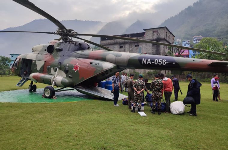 उपल्लो डोल्पामा हेलिकोप्टरबाट पठाइयो निर्वाचन सामग्री