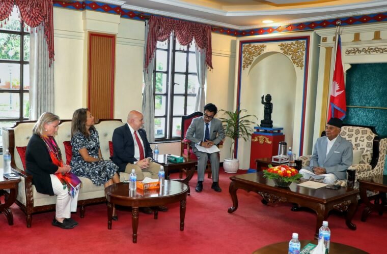 काठमाडौँ । राष्ट्रपति रामचन्द्र पौडेलसँग संयुक्त राज्य अमेरिकाको संसदीय प्रतिनिधिमण्डलले बिहीबार भेटवार्ता गरेको छ । मार्क पोकनको नेतृत्वमा आएको अमेरीकी सांसदहरूको प्रतिनिधिमण्डलसँग बिहीबार राष्ट्रपति भवन शीतल निवासमा भेटवार्ता भएको हो ।