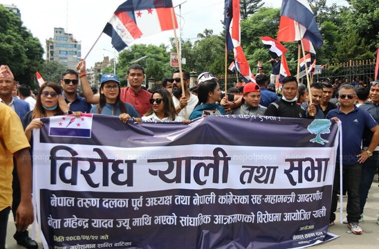 तरुण दलले पार्टीका सहमहामन्त्री एवं तरुण दलका पूर्वअध्यक्ष यादवमाथि भएको आक्रमणको विरोधमा रत्नपार्कमा विरोध प्रदर्शन गरेको हो । विरोध प्रदर्शनमा दलका अध्यक्ष विद्वान गुरुङलगायत तरुण दलका नेताहरूको सहभागिता रहेको थियो ।