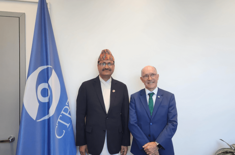 न्यूयोर्क । परराष्ट्रमन्त्री एनपी साउदले नेपाल आणविक परीक्षण प्रतिबन्धको पक्षमा रहेको बताएका छन् । मङ्गलबार आणविक परीक्षण प्रतिबन्ध सन्धिका (सिटीबिटीओ) कार्यकारी सचिव रोवर्ट फलोइडसँगको भेटका अवसरमा उनले नेपाल आणविक परीक्षण प्रतिबन्धको पक्षमा रहेको स्पष्ट पारे ।