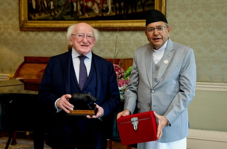 काठमाडौँ । आयरल्याण्ड भ्रमणमा रहेका सभामुख देवराज घिमिरेले शुक्रबार साँझ आयरल्याण्डका राष्ट्रपति माइकल डी हिगिन्ससँग शिष्टाचार भेट गरेका छन् ।